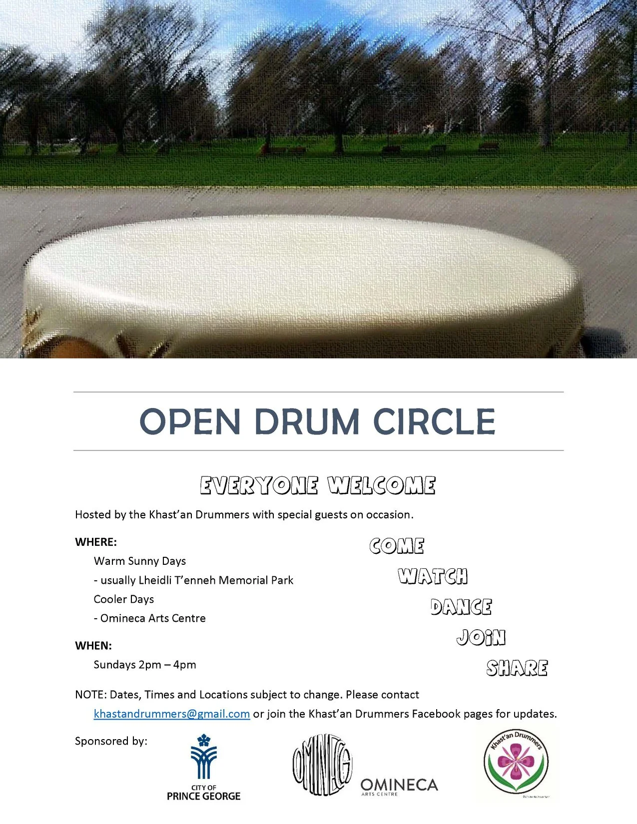 Omineca Arts Centre is now partnered with Khast'an Drummers to welcome everyone to "Open Drum Circles" on Sundays!