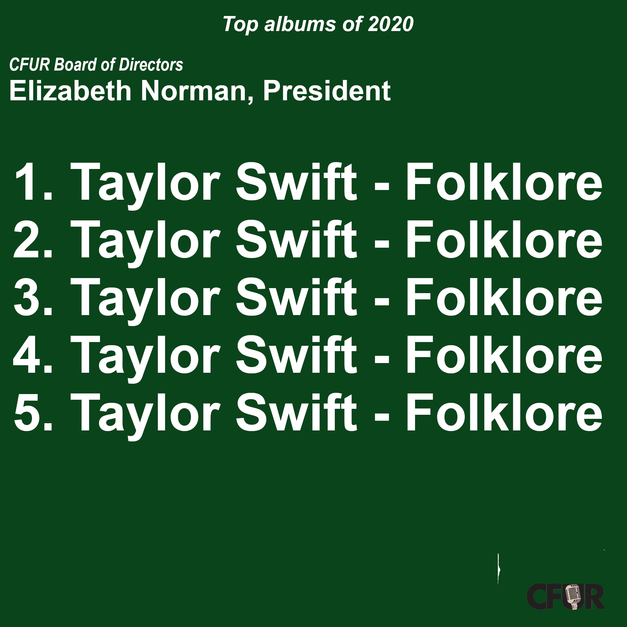 Thanks for all the music and see you in 2021!