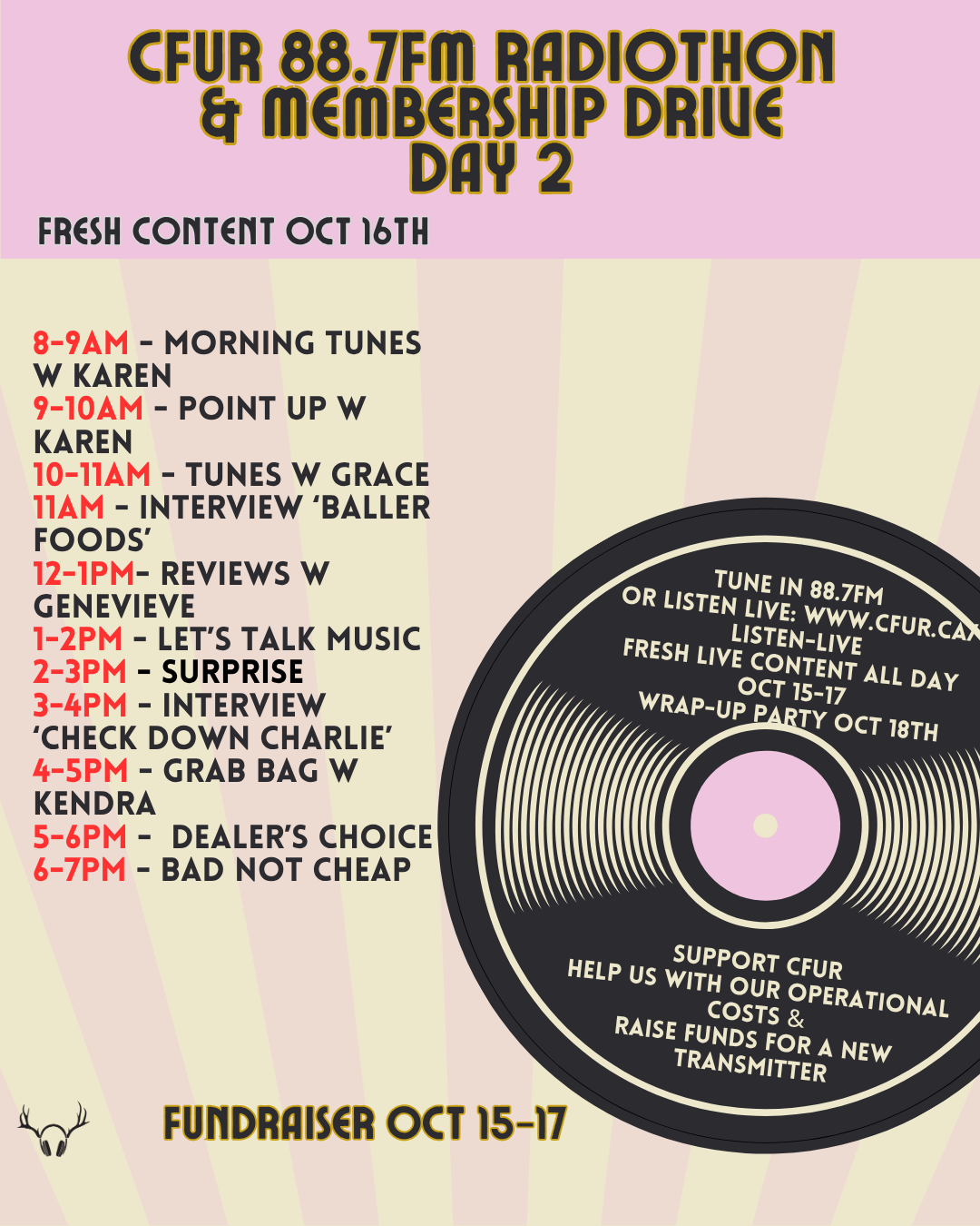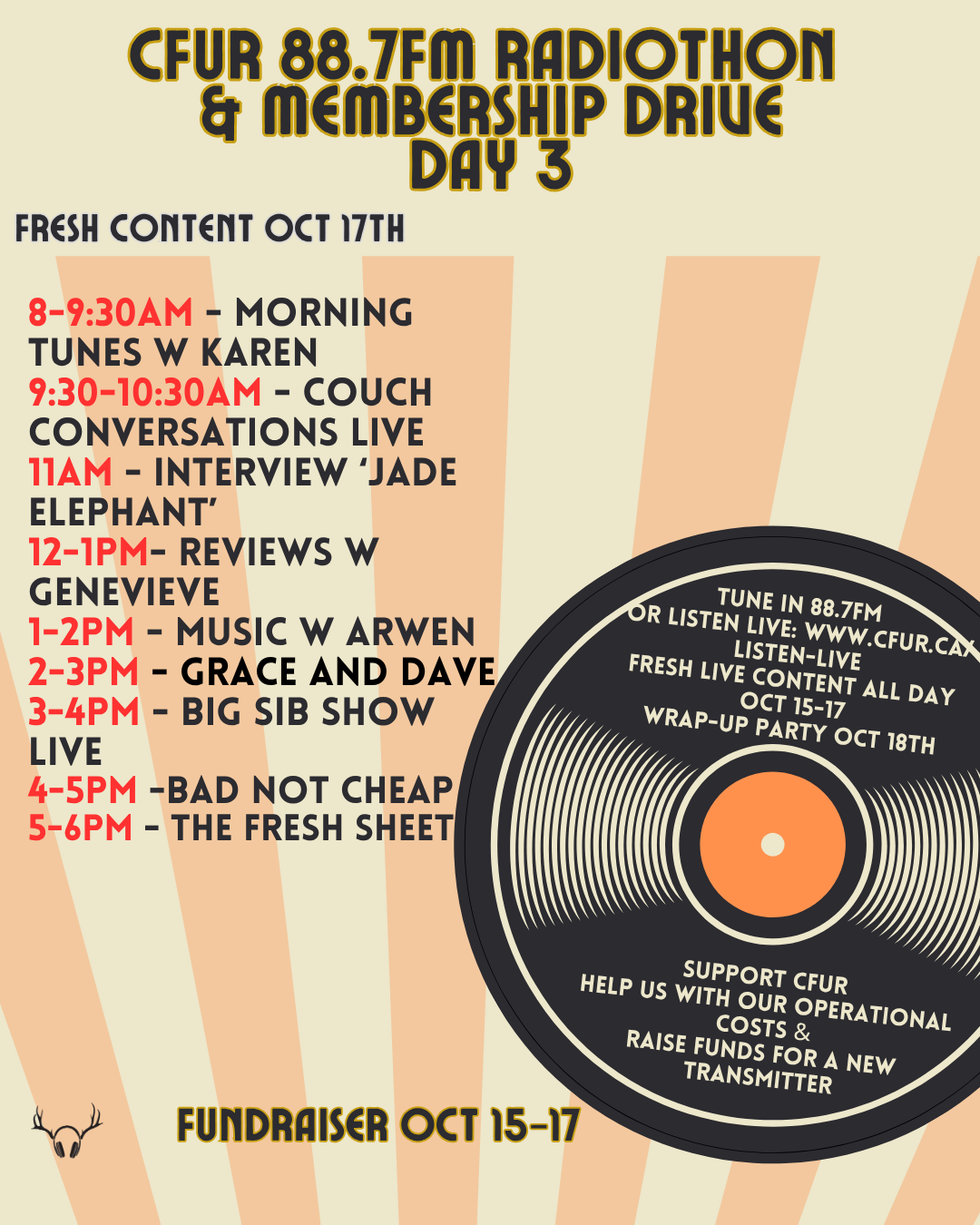 It is finally happening! Our biggest fundraiser of the year! Check out all of the great programming we have planned for our listeners, and a super fun wrap-up party to celebrate the week. We hope you can tune in! Have a look at our Radiothon page to learn more about the fundraiser! Thank you for your support <3
