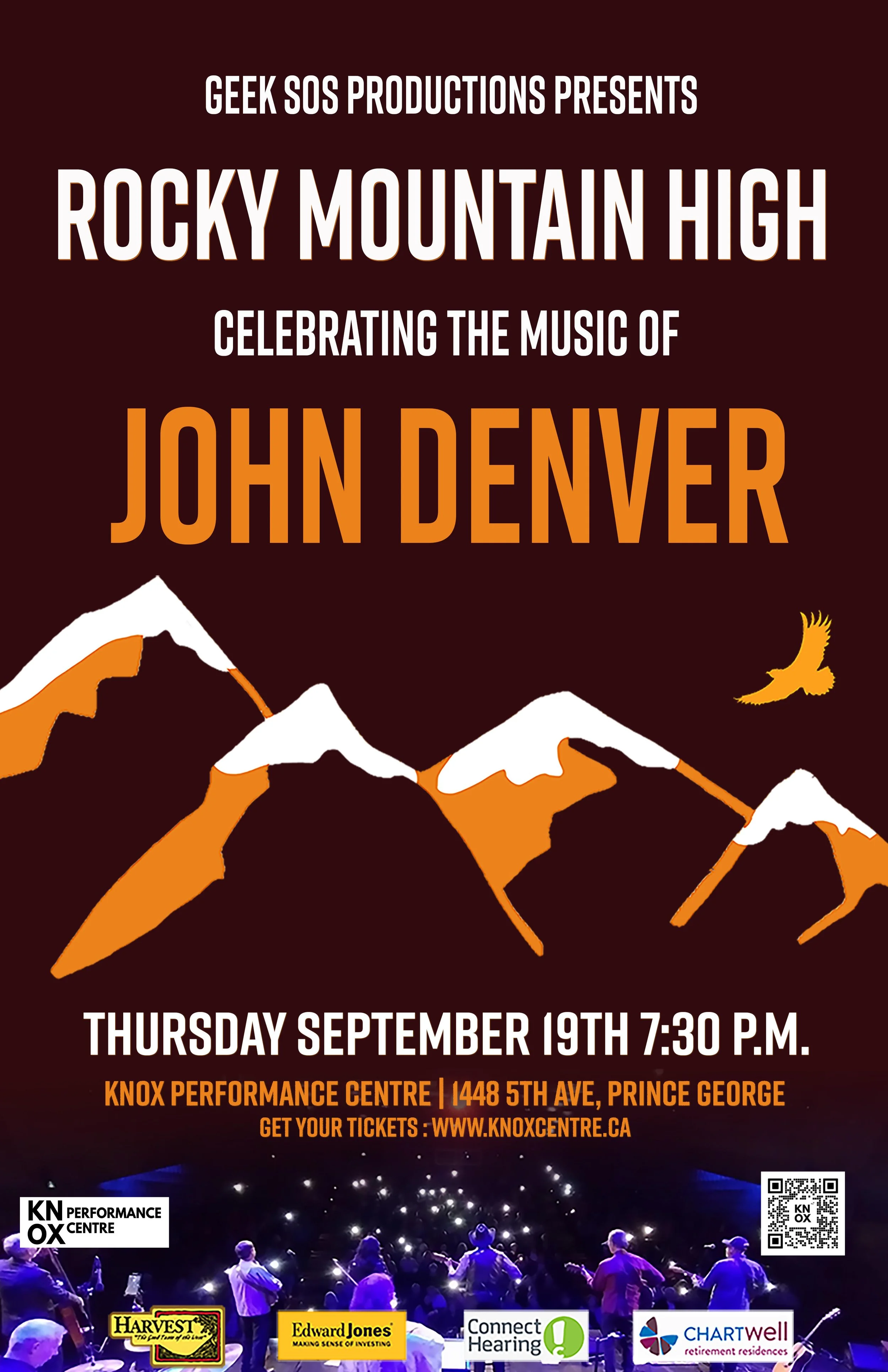 Celebrate the music of John Denver with….A Rocky Mountain High, One night only Thursday September 19th 7:30 p.m. at the Knox Performing Arts Centre Prince George. Featuring Canadian recording artists Rick and Steve Worrall and an all-star Canadian band.